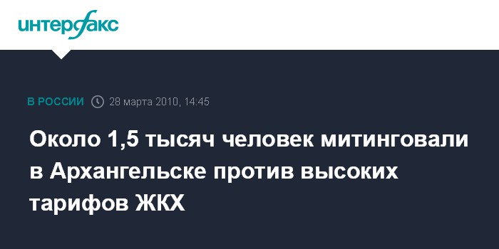 Архангельск. 28 марта. INTERFAX.RU - Участники санкционированного митинга, который прошел в воскресенье на площади Ленина в центре Архангельска, требовали снижения тарифов на услуги ЖКХ. У памятника Ленину, по данным милиции, собралось около 1,5 тысяч человек. В акции приняли участие сторонники и представители регионального отделения КПРФ, а также активисты ряда общественных организаций и движений, в том числе - местного отделения движения "Солидарность".