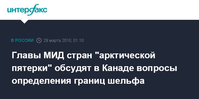 Как ранее сообщил министр иностранных дел Канады Лоуренс Кеннон, на встрече будут затронуты вопросы определения границ шельфа, безопасности и возможные последствия глобального потепления климата для Крайнего Севера.