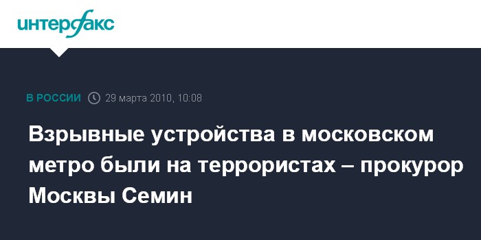 Взрывные устройства в московском метро были на террористах – прокурор Москвы Семин