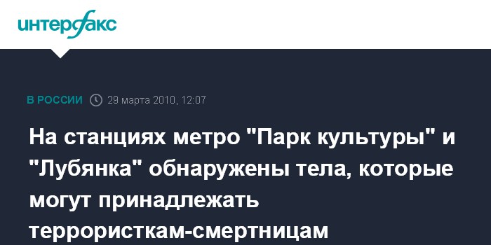 На станциях метро "Парк культуры" и "Лубянка" обнаружены тела, которые могут принадлежать террористкам-смертницам