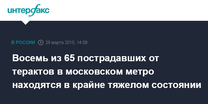 Восемь из 65 пострадавших от терактов в московском метро находятся в крайне тяжелом состоянии