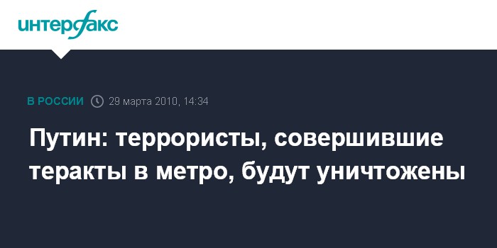 Путин: террористы, совершившие теракты в метро, будут уничтожены