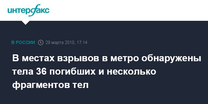 В местах взрывов в метро обнаружены тела 36 погибших и несколько фрагментов тел