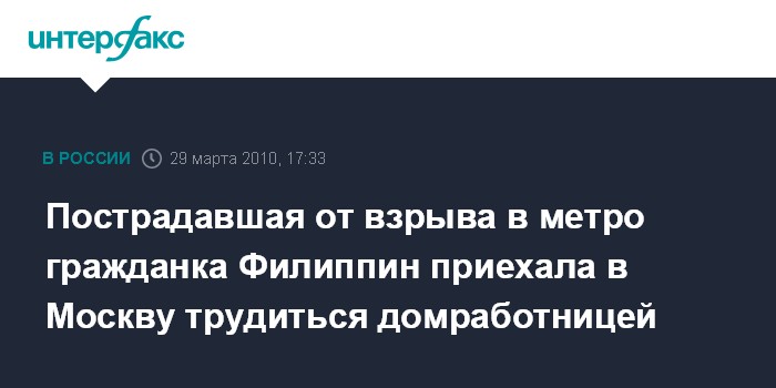 Пострадавшая от взрыва в метро гражданка Филиппин приехала в Москву трудиться домработницей