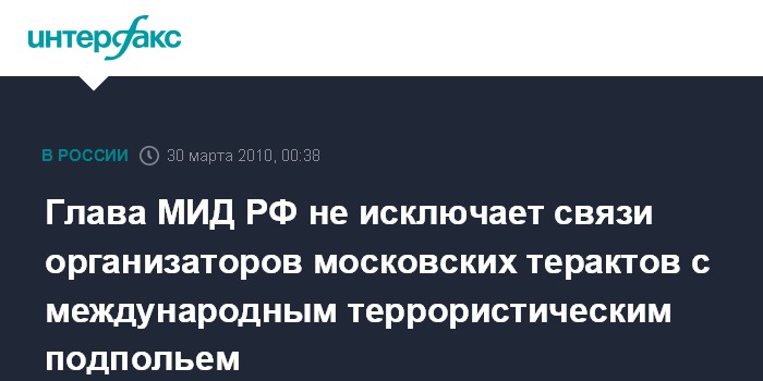 Глава МИД РФ не исключает связи организаторов московских терактов с международным террористическим подпольем