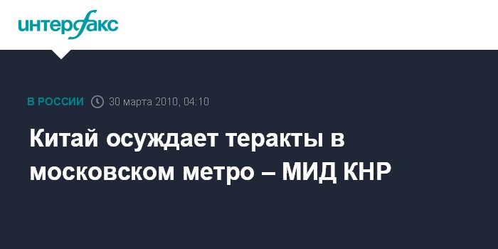 Пекин. 30 марта. ИНТЕРФАКС-КИТАЙ - Китай осуждает террористические акты, совершенные в московском метро, заявил официальный представитель МИД КНР Цинь Ган.