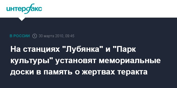 На станциях "Лубянка" и "Парк культуры" установят мемориальные доски в память о жертвах теракта