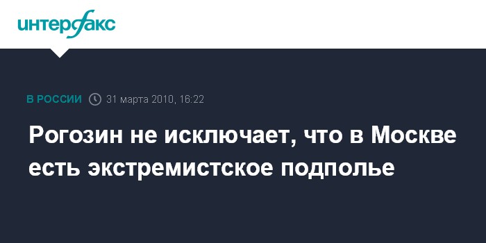 Москва. 31 марта. INTERFAX.RU - В Москве существует экстремистское подполье, без поддержки которого не могли быть совершены теракты в метро, считает постоянный представитель России в НАТО Дмитрий Рогозин.