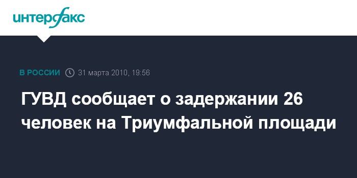 Москва. 31 марта. INTERFAX.RU - Сотрудники московской милиции в среду вечером задержали на Триумфальной площади 26 человек, нарушивших правила проведения митингов и пикетов, сообщил "Интерфаксу" начальник управления информации и общественных связей ГУВД Москвы Виктор Бирюков.