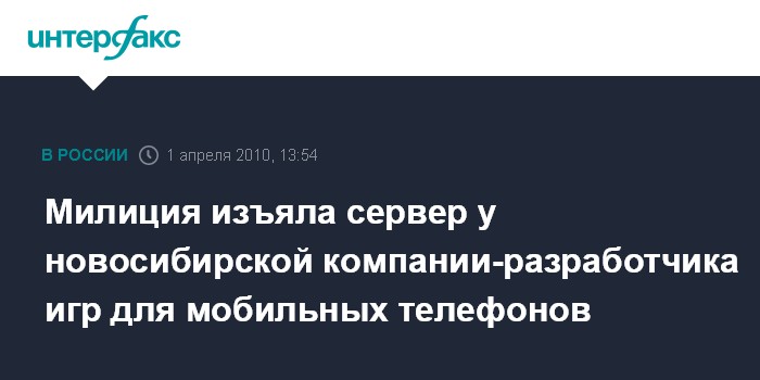 Новосибирск. 1 апреля. INTERFAX.RU - Сотрудники милиции отключили и изъяли в ходе проведения обысков в Москве сервер новосибирской интернет-компании "Овермобайл", занимающейся разработкой онлайн-игр для мобильных телефонов.