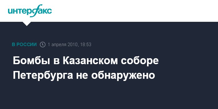 Санкт-Петербург. 1 апреля. INTERFAX.RU - В Казанском соборе Петербурга и двух торговых комплексах "Мега" не обнаружены взрывные устройства.