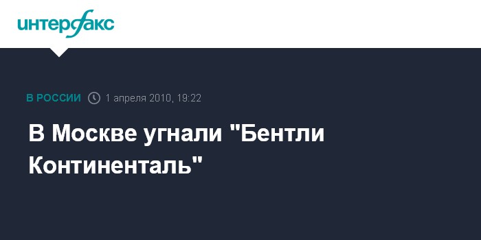 Москва. 1 апреля. INTERFAX.RU - В Москве в Северном административном округе похищен автомобиль "Бентли Континенталь" стоимостью около 250 тыс. евро.