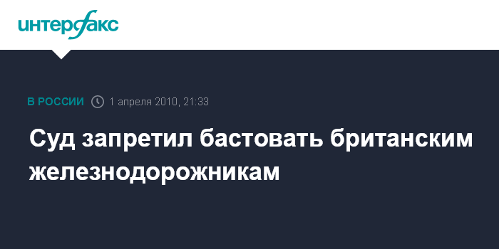 Компания-оператор железнодорожного сообщения в Великобритании Network Rail в четверг заручилась специальным решением суда после того, как заявила о несостоятельности запроса профсоюзов о проведении акции. Это в свою очередь означает, что четырехдневной забастовки не будет.