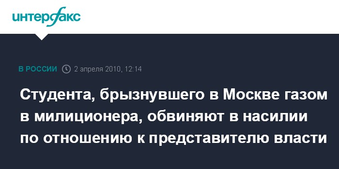 Студента, брызнувшего в Москве газом в милиционера, обвиняют в насилии по отношению к представителю власти