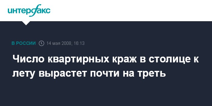 Москва. 14 мая. INTERFAX.RU - Летом московская милиция ожидает рост квартирных краж почти на треть, заявил сегодня на пресс-конференции первый заместитель начальника столичного ГУВД, начальник криминальной милиции, генерал-майор милиции Александр Иванов.