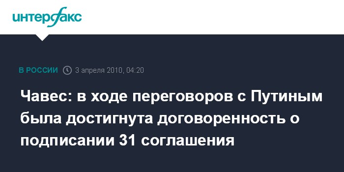 Чавес: в ходе переговоров с Путиным была достигнута договоренность о подписании 31 соглашения