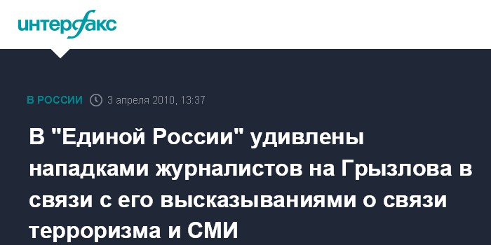 В "Единой России" удивлены нападками журналистов на Грызлова в связи с его высказываниями о связи терроризма и СМИ