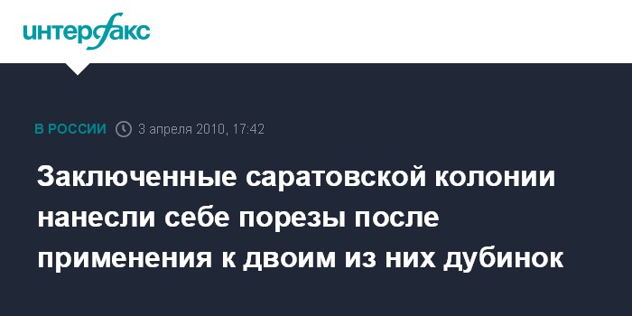 Москва. 3 апреля. INTERFAX.RU - Следственное управление СКП РФ по Саратовской области продолжает проверку в исправительной колонии №13 города Энгельса, где в пятницу утром группа заключенных нанесла себе на руки порезы.