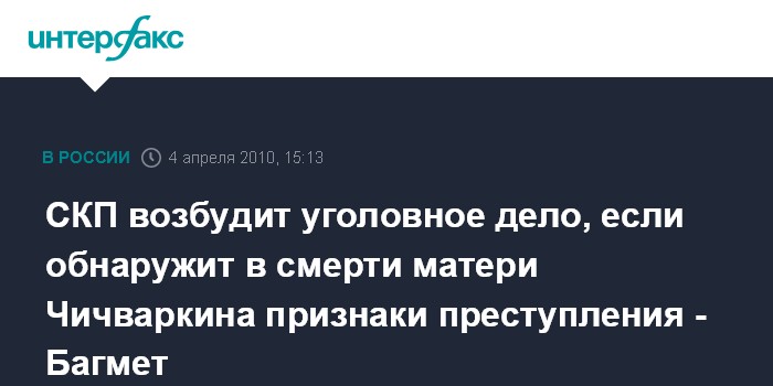СКП возбудит уголовное дело, если обнаружит в смерти матери Чичваркина признаки преступления - Багмет