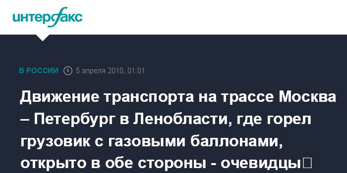 Великий Новгород. 5 апреля. ИНТЕРФАКС-СЕВЕРО-ЗАПАД - На Санкт-Петербург открыты две полосы движения, в сторону Москвы - одна, передает корреспондент "Интерфакса" с места происшествия.