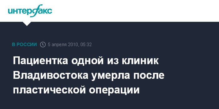 Владивосток. 5 апреля. ИНТЕРФАКС - ДАЛЬНИЙ ВОСТОК - Следственные органы Владивостока начали доследственную проверку по факту смерти женщины в одной из специализированных клиник города, где она делала пластику лица.