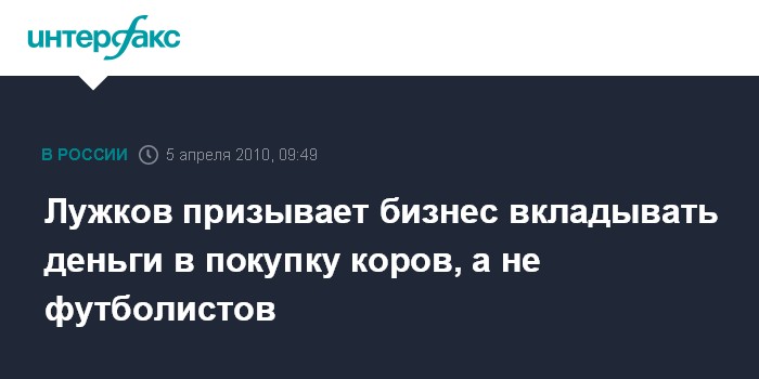 Лужков призывает бизнес вкладывать деньги в покупку коров, а не футболистов