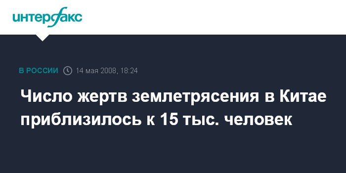 Пекин. 14 мая. INTERFAX.RU - Число погибших в результате разрушительного землетрясения на юго-западе Китая увеличилось до 14 866 тысяч человек, сообщает открытый сайт официального агентства "Синьхуа" на английском языке, ссылаясь на информированные источники.