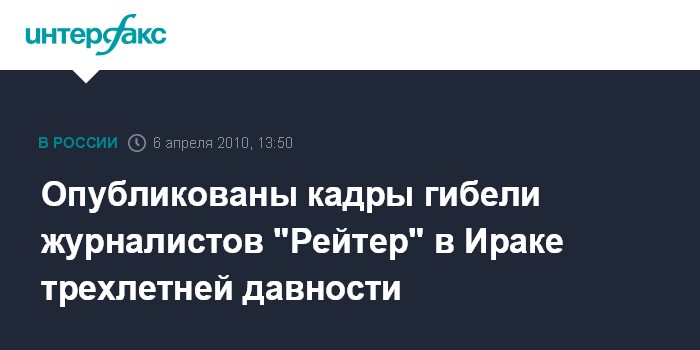 Вашингтон. 6 апреля. INTERFAX.RU - Вэб-сайт WikiLeaks обнародовал видеозапись расстрела американским вертолетом "Апач" двух фотокорреспондентов агентства Рейтер в 2007 году в столице Ирака Багдаде, сообщил во вторник американский телеканал CNN.