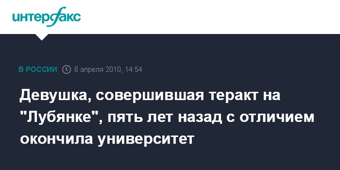 Девушка, совершившая теракт на "Лубянке", пять лет назад с отличием окончила университет