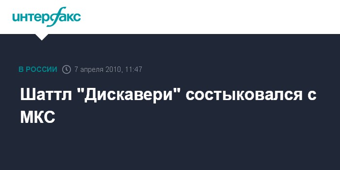 Москва. 7 апреля. INTERFAX.RU - Космический корабль "Дискавери" с семью астронавтами на борту успешно пристыковался к Международной космической станции (МКС), сообщил "Интерфаксу-АВН" в среду представитель подмосковного Центра управления полетами.