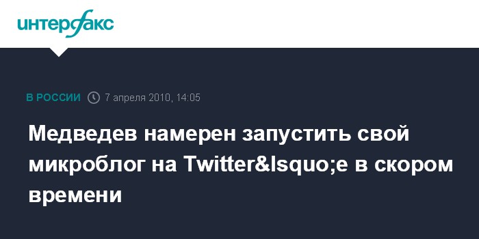Москва. 7 апреля. INTERFAX.RU - Администрация президента РФ направила официальное уведомление в администрацию микроблога Twitter с просьбой удалить аккаунт президента РФ, который сейчас существует на этом ресурсе, поскольку он не является официальным аккаунтом президента Дмитрия Медведева, сообщили в пресс-службе главы государства.
