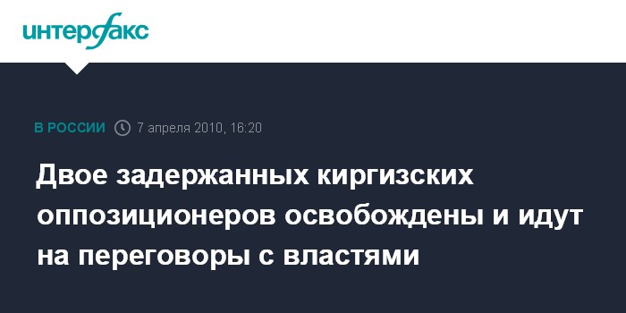 Москва. 7 апреля. INTERFAX.RU - Двое киргизских оппозиционеров Темир Сариев и Иса Омуркулов, задержанные спецслужбой, освобождены. Они намерены вести переговоры с властями.