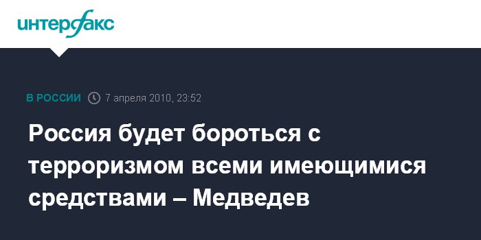 Прага. 7 апреля. ИНТЕРФАКС - Для борьбы с террористами будут использованы все средства, заявил президент России Дмитрий Медведев.