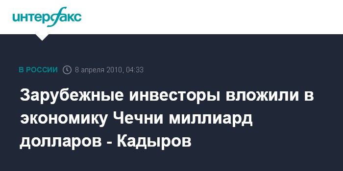 Как заявил Р.Кадыров в программе "Поздний разговор" на телеканале НТВ вечером в среду, в экономику Чечни частные инвесторы уже вложили почти $1 млрд.