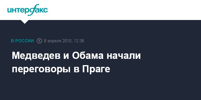 Москва. 8 апреля. INTERFAX.RU - В Пражском граде начались переговоры президентов России и США Дмитрия Медведева и Барака Обамы. Они проходят в узком составе. С российской стороны в переговорах принимают участие глава МИД РФ Сергей Лавров, помощник президента Сергей Приходько, заместитель министра иностранных дел Сергей Рябков.