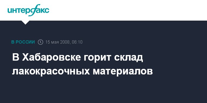 Хабаровск. 15 мая. ИНТЕРФАКС-ДАЛЬНИЙ ВОСТОК - В Хабаровске в четверг утром начался сильный пожар на складе лакокрасочных материалов на территории базы "Альфа-строй" в Южном округе.