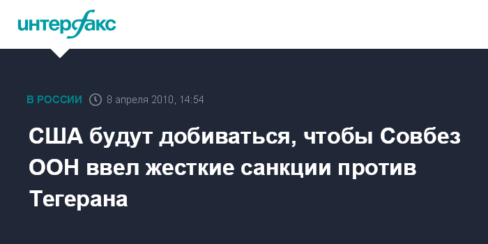 США будут добиваться, чтобы Совбез ООН ввел жесткие санкции против Тегерана