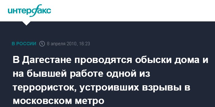 В Дагестане проводятся обыски дома и на бывшей работе одной из террористок, устроивших взрывы в московском метро