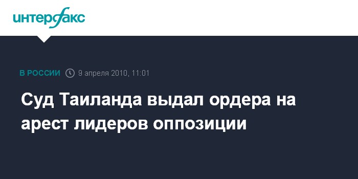 Москва. 9 апреля. INTERFAX.RU – Уголовный суд Таиланда в пятницу выписал ордера на арест 17 оппозиционеров-"краснорубашечников", в том числе и трех лидеров движения - Нуттавута Сайкуа, Виры Мусикапонга и Джатупона Промпана, сообщает в пятницу интернет-сайт таиландской газеты "Нейшн".