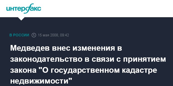 Медведев внес изменения в законодательство в связи с принятием закона "О государственном кадастре недвижимости"