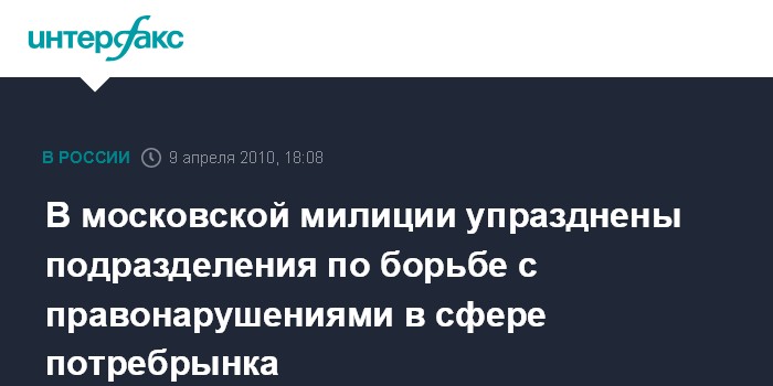 В московской милиции упразднены подразделения по борьбе с правонарушениями в сфере потребрынка