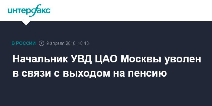Начальник УВД ЦАО Москвы уволен в связи с выходом на пенсию