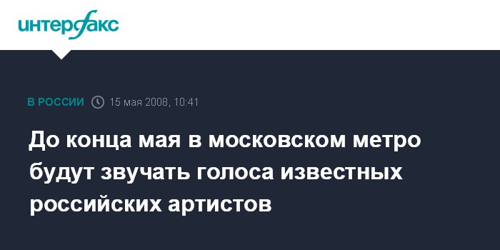 Москва. 15 мая. INTERFAX.RU - В дни празднования 73-летия Московского метро пассажиры Сокольнической линии вновь услышат голоса любимых артистов театра и кино, сообщили "Интерфаксу" в пресс-службе столичного метрополитена.