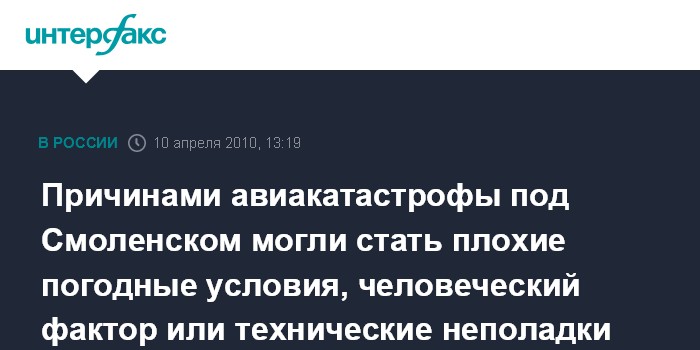 Причинами авиакатастрофы под Смоленском могли стать плохие погодные условия, человеческий фактор или технические неполадки