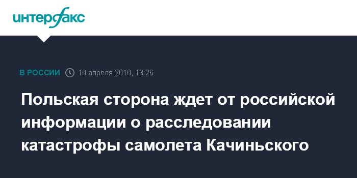 Катынь/Москва. 10 апреля. INTERFAX.RU - Польская сторона рассчитывает получить от России всю информацию о расследовании причин крушения самолета президента Польши под Смоленском.