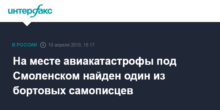 На месте авиакатастрофы под Смоленском найден один из бортовых самописцев