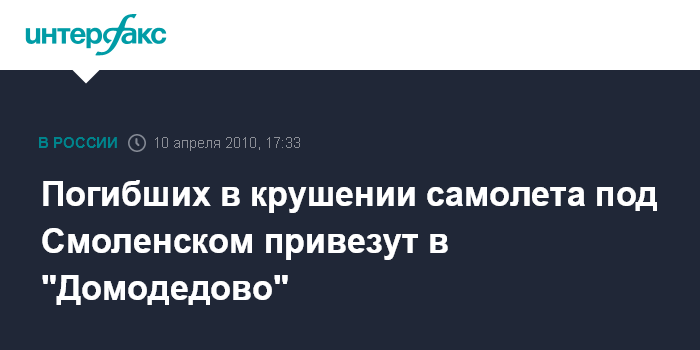 Погибших в крушении самолета под Смоленском привезут в "Домодедово"