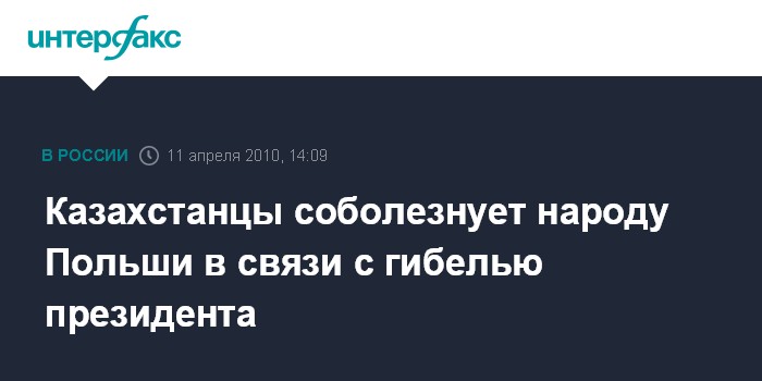 Астана. 11 апреля. INTERFAX.RU - Граждане Казахстана и гости страны в воскресенье несут цветы и зажигают лампады у зданий посольства Польши в Астане и генерального консульства в Алма-Ате, чтобы выразить свои соболезнования в связи с авиакатастрофой под российским Смоленском. Казахстанцы идут к зданиям польской дипмиссии почтить память погибших с самого утра, некоторые приходят с детьми. Около входа в посольство горят свечи. В католических и православных храмах, в мечетях читают молитвы в память погибших.