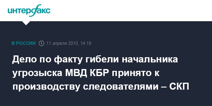 Москва. 11 апреля. INTERFAX.RU - Главное следственное управление по Северо-Кавказскому и Южному федеральным округам приняло к производству уголовное дело, возбужденное в связи с гибелью в Нальчике начальника уголовного розыска МВД по Кабардино-Балкарии Зураба Шукаева, сообщает СКП РФ.