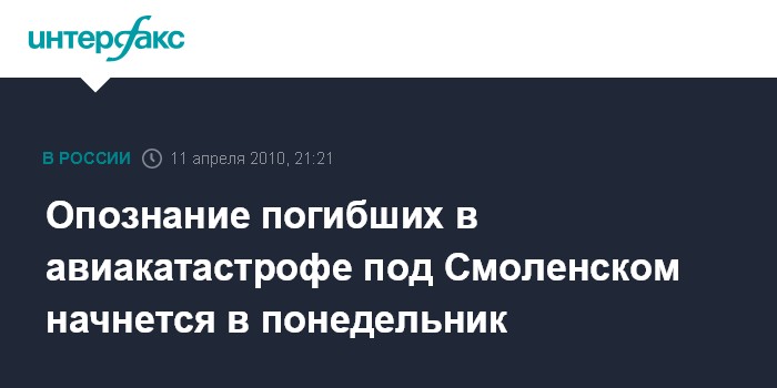 Опознание погибших в авиакатастрофе под Смоленском начнется в понедельник